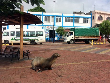 Our firs outing was in Punta Cormorant. Early risers joined us for a naturalist walk at 6:30 in the morning. The first light of the day was captured by our cameras while sea turtles were struggling in the waves close to shore trying to mate. The white sand beach was also colored by the bright color of the Sally lightfoot crabs and shorebirds were running along the beach trying to pick up small crustaceans.
