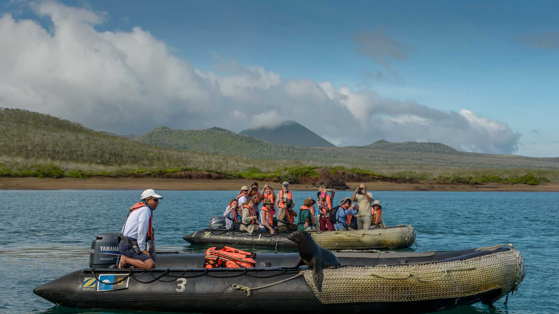 Our day began with the chance to point out a lot of interesting geological features as we enjoyed Zodiac tours along a massive flank of Ecuador Volcano on Punta Vicente Roca. In the afternoon, we took a sunny walk on Punta Espinoza on Fernandina Island. We spotted many iguanas, and a bunch of sea lions hanging around, too.