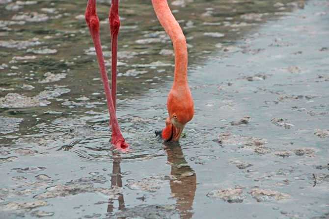 The morning offers the best light for photography, so we had a pre-breakfast outing. We landed on a green-olivine beach in Punta Cormorant and observed so much wildlife—a small colony of sea lions, nesting blue-footed boobies, and, in a lagoon behind the beach, we saw flamingos. These birds are a recent arrival to the Galapagos. We also we visited an active nesting sea turtle site.