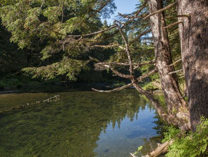 Like the past three days in Southeast Alaska, today turned out to be bright, sunny, and warm. We spent the morning at a place called Fox Creek located on Chichagof Island. There, we had the opportunity to do nature walks along bear trails in the temperate rain forest as well as kayak around two small islands. A highlight of the walks was the discovery of a bright orange shelf fungus called chicken of the woods. We didn’t harvest any to take back to the ship, but when cooked it is surprisingly reminiscent of chicken! The kayakers spied curious harbor seals in a small cove as well as several bald eagles flying low over the water.
