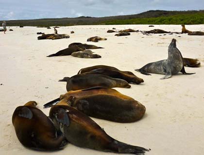 Today we anchored at Gardner Bay, on the northeastern end of Española Island. The oldest of the 19 islands of the Galápagos, Española is located on the southeast corner of the archipelago.