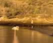 The first rays light up the northwestern branch of the Beagle Channel. In the distance mountains glow in pale yellows and oranges as well as the water’s many birds, including a flock of hundreds of sooty shearwaters as they search for food.