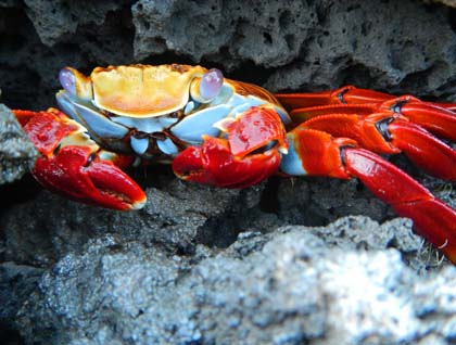 Due to its isolation, Genovesa is considered the jewel of the Galápagos Islands. This unique place has a very fragile ecosystem and it is very important to practice sustainable tourism. Thus, to be able to enjoy Mother Nature, later in the morning, our outing took place on Prince Phillip’s Steps.  From the top of the island, we observed the magnitude of the caldera of the ancient shield volcano. As we walked through a Palo Santo forest, Nazca boobies, mockingbirds, Galápagos doves and Darwin’s finches charmed us with their sounds. The trail took us to an old rocky plain oxidized by erosion. Since the Galápagos hawk is absent on the island, short-eared owls have become diurnal and prey on petrels. Storm petrels were extremely abundant on the ancient lava field and we were astonished by their bizarre behavior. Because they fly during daytime to avoid predators, they only return to their nest holes at night. The perfect camouflage of the short-eared owls’ plumage against the brown rocks surprised many petrels landing on the lava field.