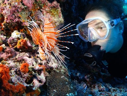 The early risers enjoyed this wonderful and challenging approach to Darwin bay, while the rest were preparing for their first outing of the morning. The kayaking took place along the cliff where dozens of different birds were sighted. Later we set foot on Darwin’s beach. Swallowtail gulls and red-footed boobies were the first species found on that peaceful place. Our excursion took us a little further and we happened upon he breathtaking frigate birds displaying their gular pouches to the females that were hovering over them. Sharp-beak finches, also known as “vampires”, and mockingbird where found in the saltbushes. Afterward we headed back to the National geographic Islander and prepared for a second outing of deep water snorkeling. The underwater realm astonished us with a wide variety of fish. For example, parrotfish, wrasse, indo pacific bonito, Moorish idol and a few more species of fish from the indo pacific where spotted in the calm, warm water of Darwin Bay.