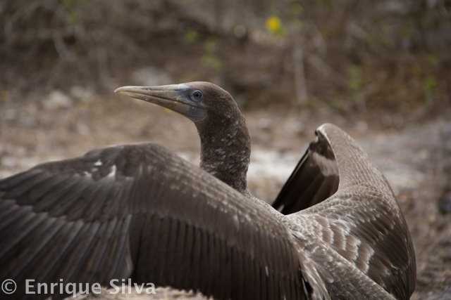 Our guests walk through the dry forest of “Palo Santo” a deciduous tree which offers support for the nesting sites of the red-footed boobies; we see several of them quite close and some guarding their chicks. We reach the other side of the point and almost immediately clouds of what seems to be swarm of insects are seen at the distance but as we look with our binoculars we realize they are not insects but tiny swallow like birds, I mention then to my group we are watching one of the largest nesting colonies in the world of storm petrels relatives to albatrosses, and one of the reasons for their odd flight serves a very important purpose, avoid the attack of the top predator of the island “the short-eared owl”.