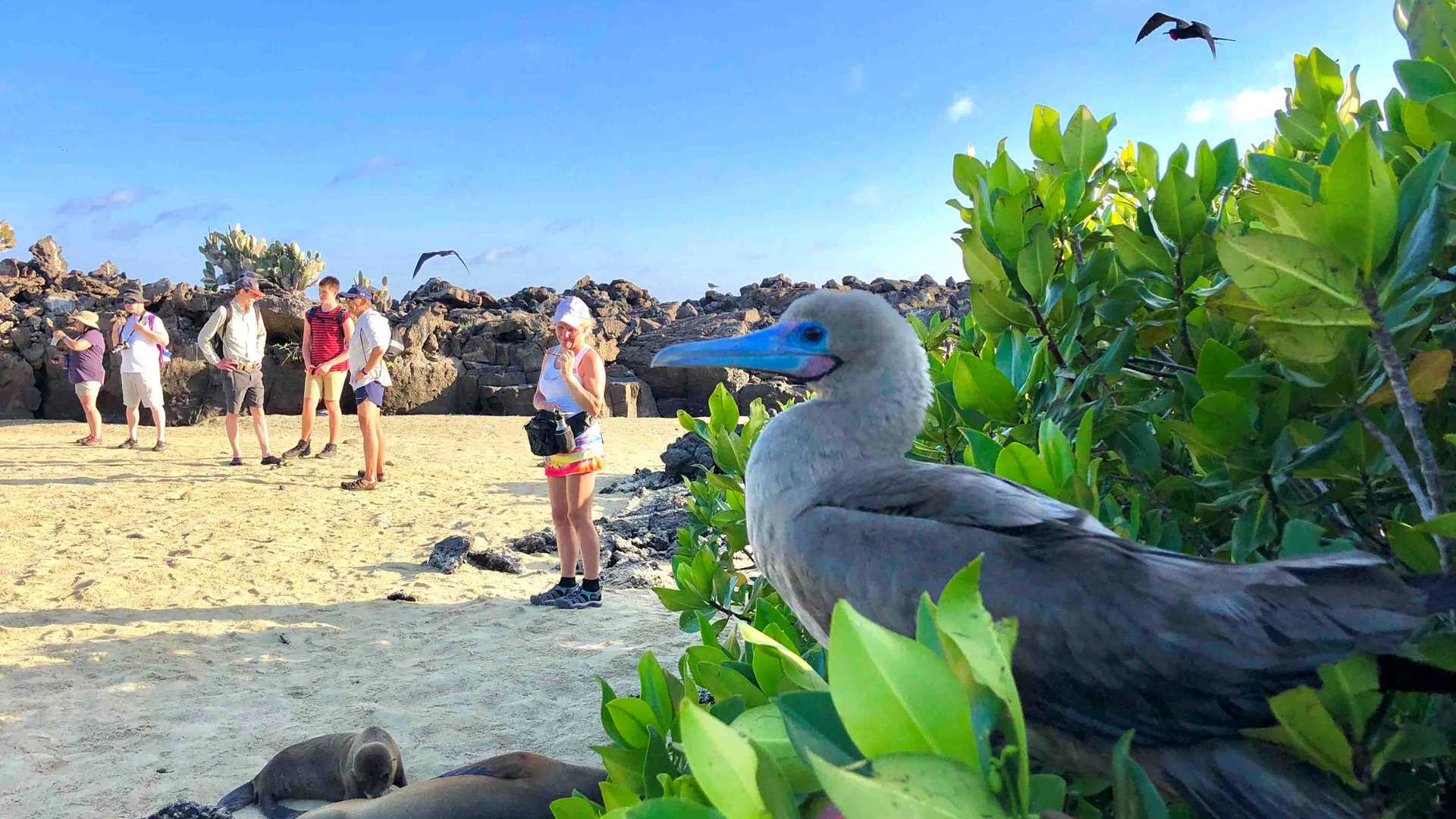We started the day with excitement as we landed on the beautiful, pristine coast of Isla Genovesa - a true birder’s dream. Along the sandy beaches and steep cliffs of Darwin Bay, we were surrounded by an incredible array of birdlife. Frigatebirds soared closely overhead with their red pouches on full display, while Nazca and blue-footed boobies nested along the rocky ledges. Swallow-tailed gulls called out as we walked past. In the distance, we saw the stoic and elusive short-eared owl. The island was alive with color, sound, and constant movement. Between our excursions to Isla Genovesa, we snorkeled near Prince Philip’s Steps and discovered a vibrant world beneath the waves. Schools of fish swirled around us, a fur seal turned in the water as if dancing on cue, and sea lions relaxed nearby. As our last snorkeling adventure came to a close, we spotted a sea turtle resting calmly in a crevice. As the sun retreated into the sky on our last return to National Geographic Endeavor II, we reflected on the sheer magnitude of what we witnessed on our last full day. Isla Genovesa, like the other islands, gave us a connection to a sacred world. The harmony between land, sea, and sky reminded us how deeply interconnected, vital, and fragile these ecosystems are. Watching birds tend to their nests and marine life swim effortlessly, we were struck by how little space there is between wonder and reverence. We recognized that our journey wasn’t just about observing unique wildlife, it was about feeling part of something grander and beautifully ancient.