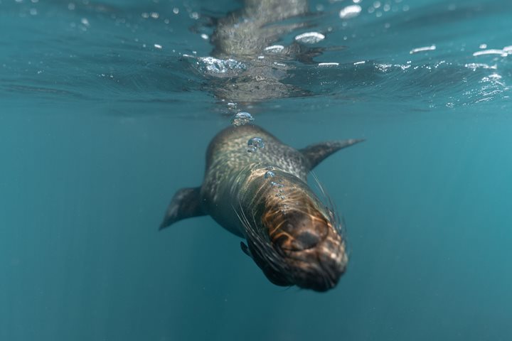 During the second part of the morning, we headed to the cliffs to snorkel from Zodiacs and encountered several species of fish as well as Galapagos sea lions and fur seals. We also had some guests enjoying the beach and all the animal activity around this location.