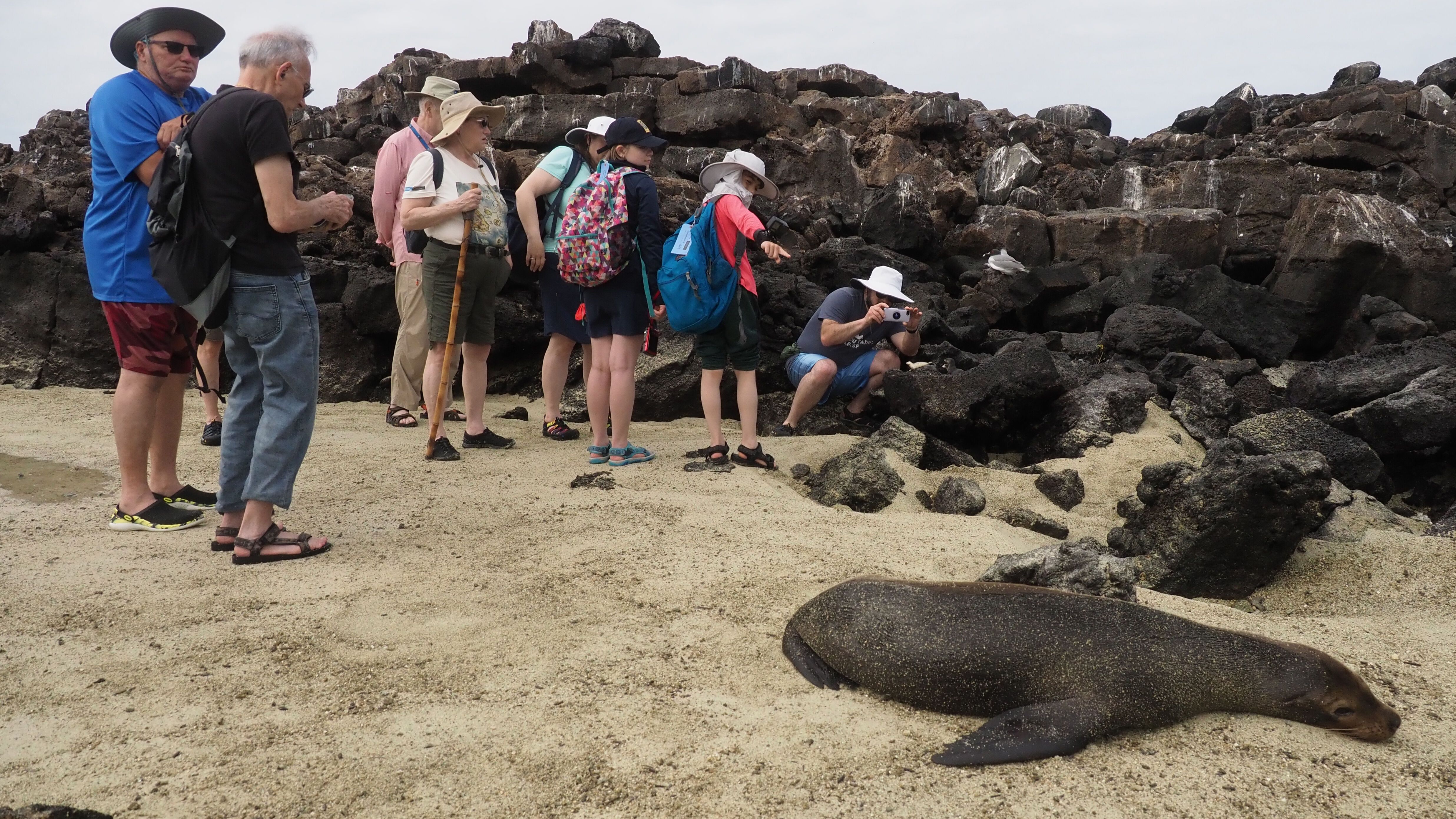 Back aboard, we prepared for our last snorkeling outing to search the undersea realm. Today we had close encounters with many fish and playful sea lions; seeing them up close brought excitement and admiration.