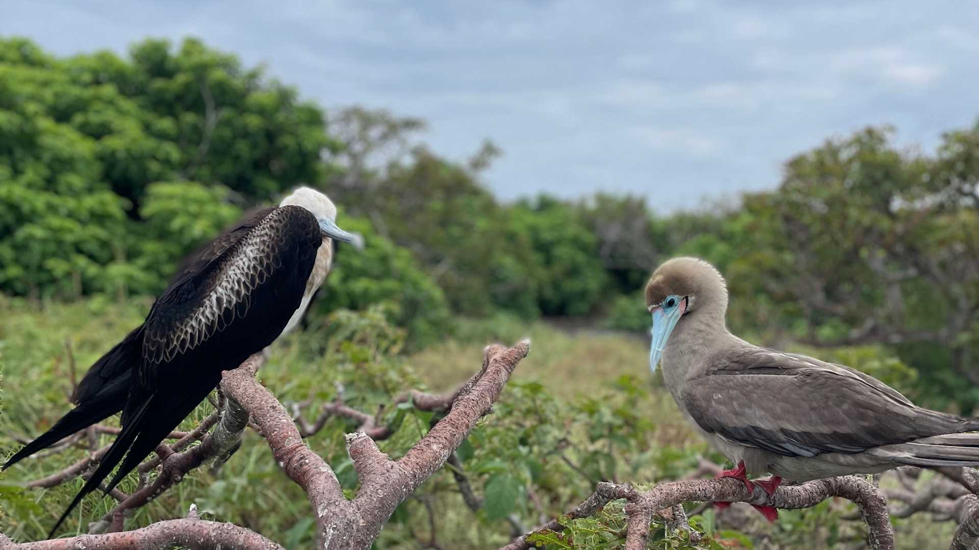 We spent the day on the beautiful Genovesa Island. This place is outstanding, especially for those who love seabirds. Red-footed boobies and Nazca boobies were abundant along the trails. We observed plenty of juvenile frigatebirds and even a few males displaying a fully inflated red pouch.