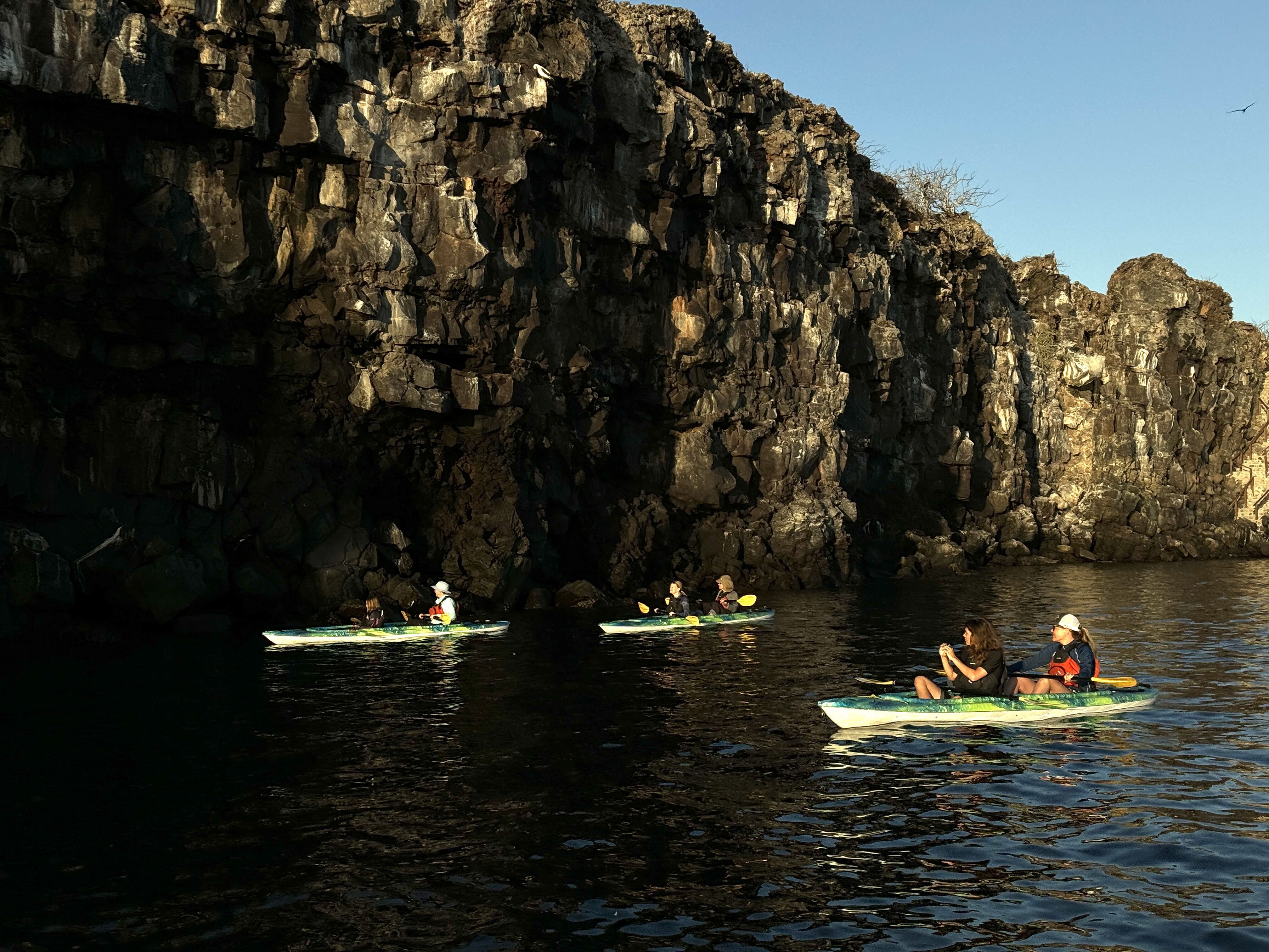 We were already anchored inside Darwin Bay when the sun rose. Right away, a group of kayakers and paddleboarders left the stern for one of the most serene paddles possible: the flat water along the base of the inside cliffs. We observed red-footed boobies, frigates, red-billed tropicbirds, and swallow-tailed gulls…everyone was up and moving for the business of courtship and searching for food and/or nest sites.