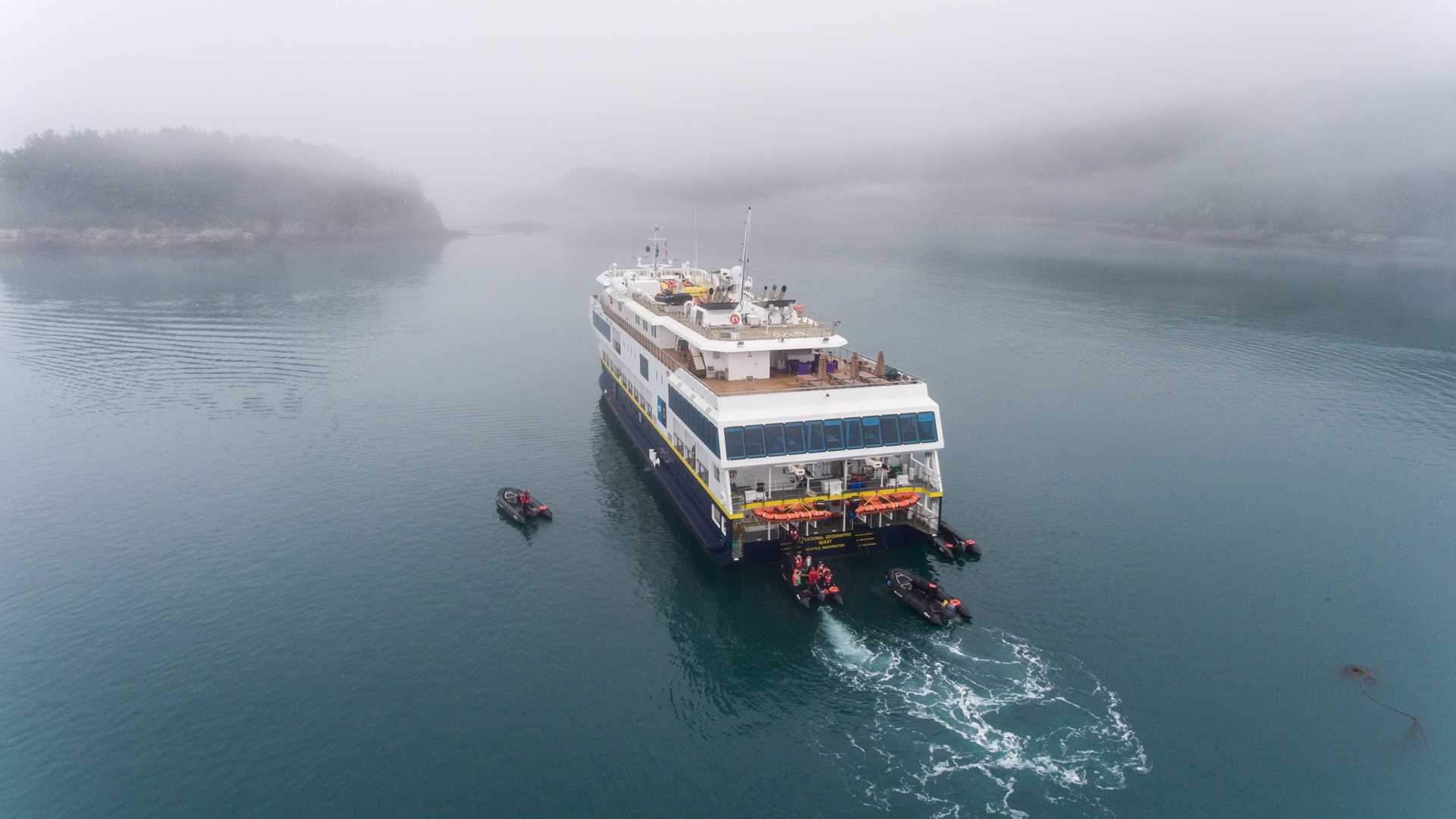 After exploring the glaciers and open waters of the northern Inside Passage, we sailed south through the night and returned to the starting point of our journey, Baranof Island. This island, along with Admiralty to the east and Chichagof to the north, is home to one of the highest densities of brown bears in the world. To search for evidence of the bears as they begin their yearly salmon feast and continue our exploration of the temperate rainforest, we anchored in Kelp Bay to kayak and hike the shoreline throughout the morning. Later in the afternoon, we welcomed Dr. Andy Szabo of the Alaska Whale Foundation to learn more about ongoing research taking place in Alaska on the unique bubblenet feeding behavior we witnessed earlier in the trip. Only in Alaska can you experience the forest, salmon, bears, and whales all in one day.