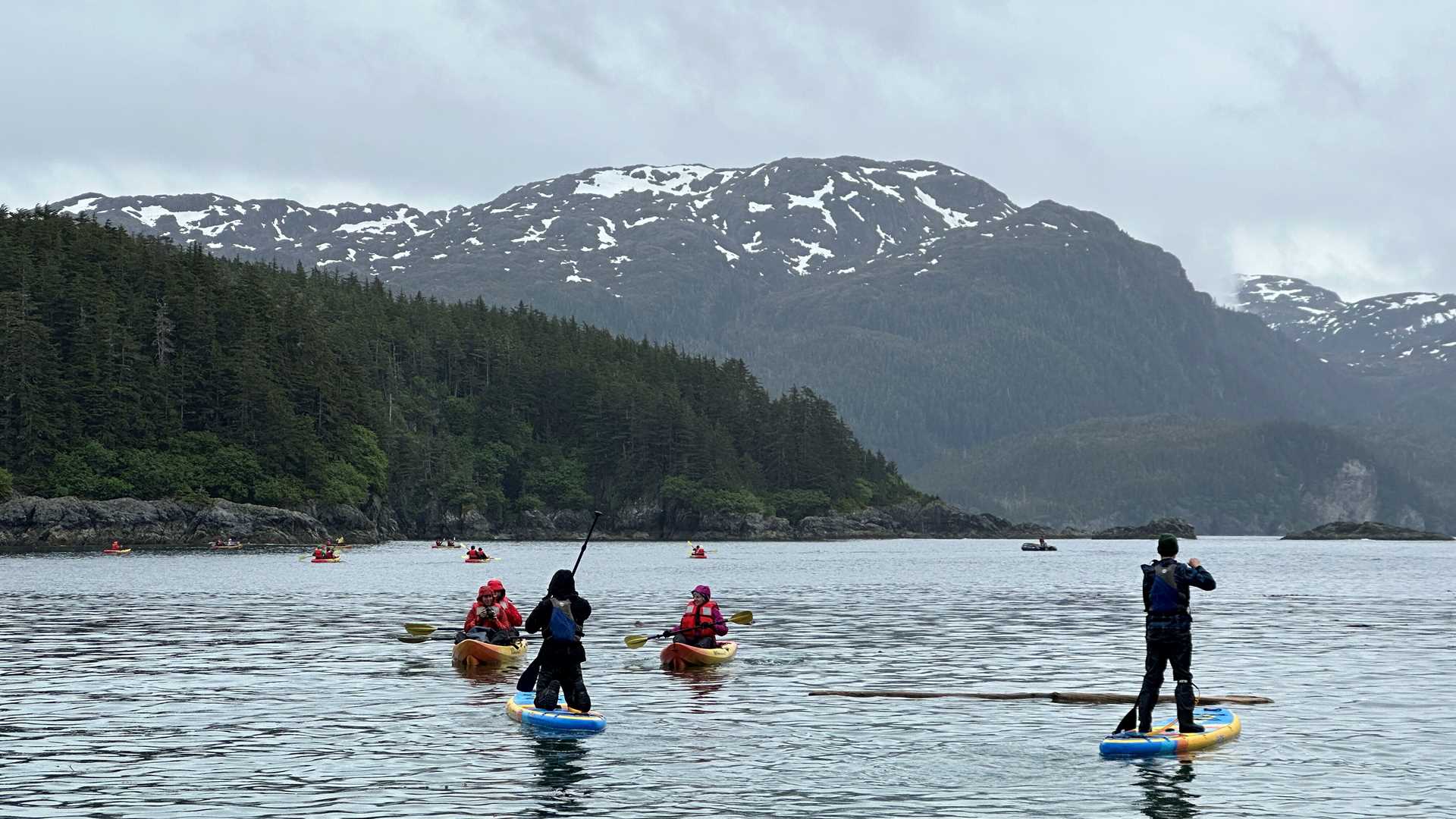 Today was a busy day full of fun adventures. We had a beautiful morning on George Island. Half of our group set out on kayaks and paddleboards, and we paddled over kelp forests into little coves, exploring the sea stars, mussels, and anemones of the rocky intertidal. The other half of our group hiked through the lush forest, across the island to the site of a WWII canon perched at a tall lookout, paying homage to a time when there was fear of military invasion in this part of the world.