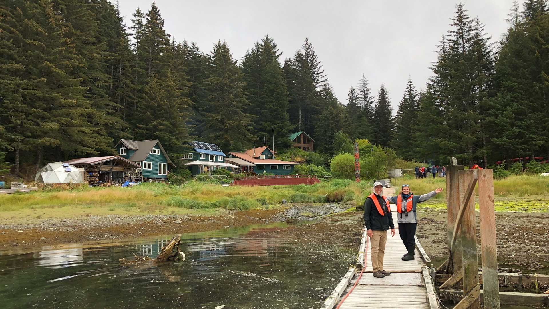 We enjoyed morning activities of hiking and kayaking in the sparkling sunshine. George Island has a lovely arch on the oceanside, our destination for kayaking. A shy sea otter and lone Steller sea lion visited our group briefly. Meanwhile, groups hiked “to the gun,” a canon located on the far side of the island and put in place to protect the West Coast during World War II. After lunch, we cruised around the Inian Islands to view wildlife, before heading to the Hobbit Hole to visit with Zach Brown at the Tidelines Institute. Zach’s place is a great example of low tech, low footprint, high education, and high activism. Zach, a PhD Stanford graduate, and his wife lead inclusive experiences in “the heart of wilderness.” Check them out at tidelinesinstitute.org.