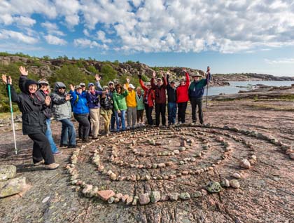 Under blue skies we sailed to George Island, a small island involved in WWII. Landing on a beach of almost white granodiorite, we separated into different groups for the day’s activities; first, hiking. Under a lovely forest of Sitka spruce and western hemlock, we hiked up a trail to a big cannon that lies in its position to guard one of the entrances to the Inside Passage against any Japanese invasion. This never took place, but we were prepared.