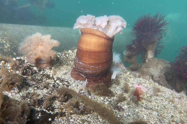 When we were back aboard, the ship repositioned a few miles—passing through the wall of feeding whales again!—to anchor for our final destination of the day. The Inian Passage is the constricted waterway at the entrance to the Inside Passage through which a huge amount of water flows, as the tides change every 6 hours. It is one of the most productive marine areas in the world with phytoplankton-rich emerald green waters that attract all manner of fish, which in turn attract sea birds, eagles, and marine mammals. The surrounding Inian Islands are home to a variety of sea birds, a haul out for steller sea lions, and kelp bed habitat for sea otters. Small boat cruises brought us through this washing machine of currents, and we got great looks at all of these creatures, plus more humpback whales! What an amazingly fun and adventurous ride.