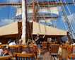 As we continued our journey to the northernmost part of the bay, we spotted some mountain goats and a solitary brown bear that was enjoying the sunshine up high in the mountainside. A couple of humpback whales and many sea otters were discovered as well; numerous harbor seals were seen sunbathing on ice floes, looking at us with their huge eyes as we sailed past them. However, it was the impressive view of the glaciers that made our day. First the Lamplough, then the John Hopkins, and finally the Margerie and Grand Pacific Glaciers regaled us with their grandeur and amazing colors. At the Margerie Glacier we had the chance to witness some great calving that helped us understand the whole process of change and rebirth that make Glacier Bay such a spectacular place.