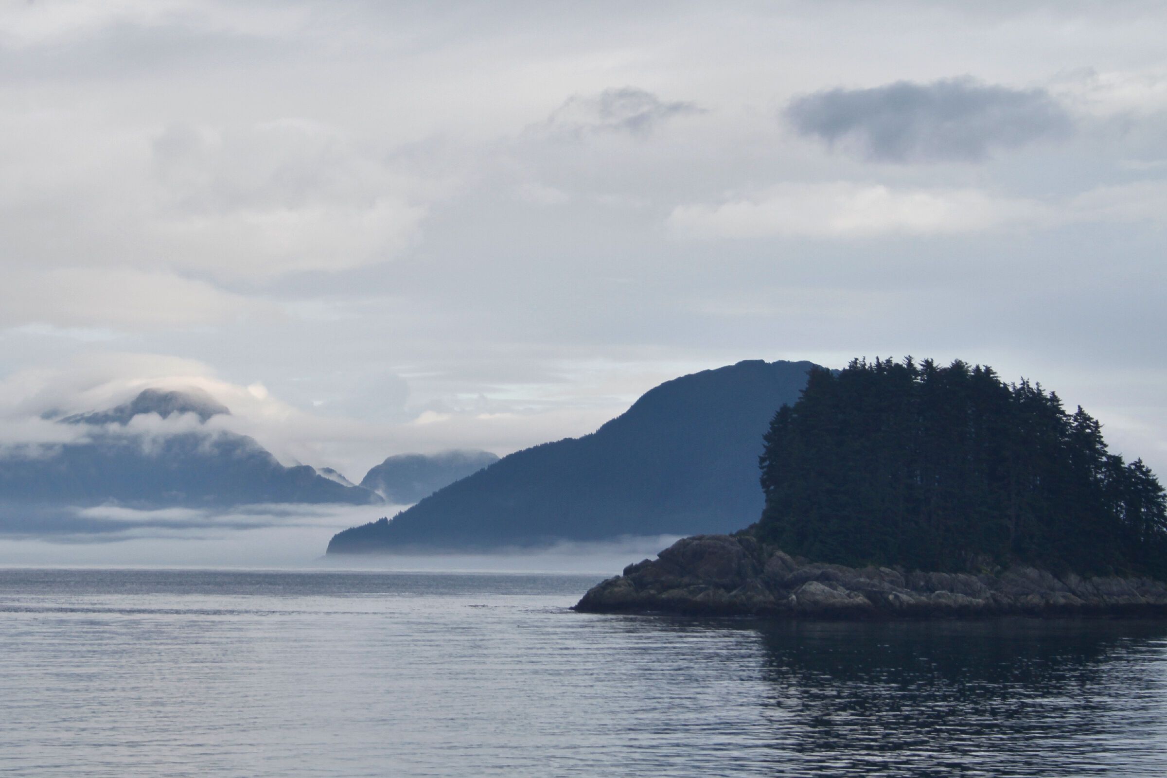 As we continued to skirt south, our first stop was at a sheer rock wall called Gloomy Knob. A healthy population of mountain goats make their home on the steep cliffs of Gloomy Knob. Through a light rain, a total of four mountain goats were found. As the icing on the cake, we visited South Marble Island before exiting the park. We always find a haul out of sea lions there, but there was no way we could have predicted what happened next. At one point, our boat was surrounded by tufted puffins while a mother otter paddled by with a baby. A long black fin approached from behind. It was a killer whale, giving us a send-off as we left the park. While all mammals made it out alive, it was a very intense moment for the mammals on board, as well as those off.
