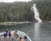 As the afternoon progressed, we ventured farther through Glacier Bay and were rewarded with an awe-inspiring encounter with lunge-feeding humpback whales. The weather may have been rainy, but the sight of these magnificent creatures more than made up for it. The humpback whales gracefully arched their massive bodies, propelling themselves through the water to capture shoals of fish before plunging back down into the depths.