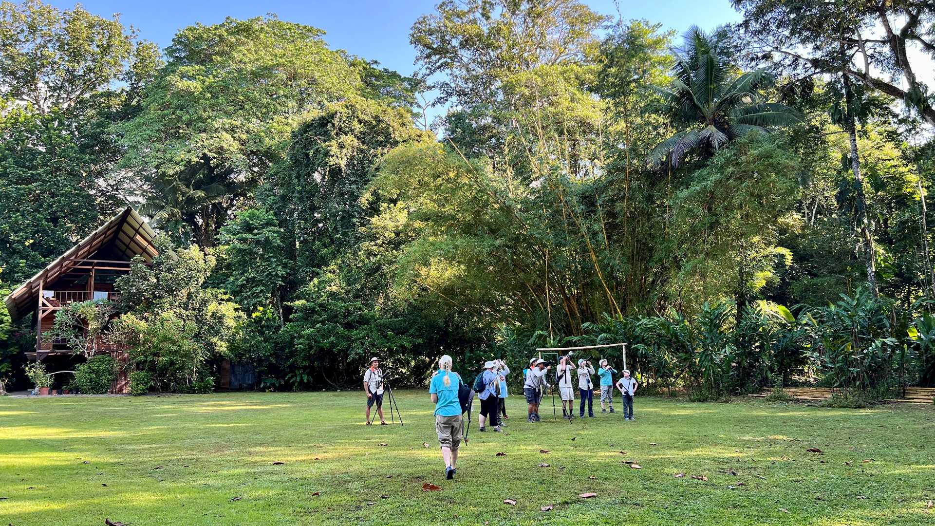 We entered the area of Dolphin Quest, owned and operated by the brothers Klotchko. This privately-owned property is bursting with plants and wildlife. We were welcome to explore their grand array of trails and beautiful gardens. A large part of what they eat and use in their home comes from their complex and well-planned garden. Fruits, vegetables, spices, herbs, eggs, and poultry live, grow, and thrive inside these many hectares of wet lowland tropical forest.