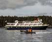 We woke up to crisp air and fog rolling in over the mountains. We grabbed all our layers and our binoculars and went out to the bow to look for spirit bears. It seems our luck was for one night only, and this morning we found ourselves viewing humpback whales. We were able to identify two of the humpback whales using the citizen science project website, Happy Whale, and learned that their names are Webb and Loner. Both whales had recently arrived from Hawaii! We spent some time enjoying the whales and then moved on to Klewnuggit Inlet.