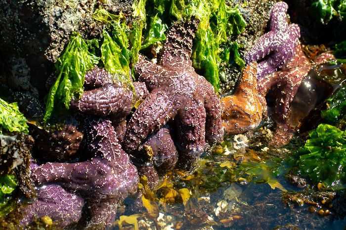 Our early and late afternoon was filled with opportunities to hike into uncharted areas of the forest or work one-on-one with the onboard National Geographic photographer Dan Westergren and our two photo instructors, Nathan Kelley and Brenda Tharp. We could also take small-boat excursions to see intertidal life at low tide, then visit a Steller sea lion haul-out. There was an outstanding array of sea stars, sea cucumbers, and sea urchins exposed all along the waterline. Sunny skies made the air warm and inviting, filling our spirits with child-like enthusiasm to get out, get dirty, and experience new things you can only find here in wild Alaska.
