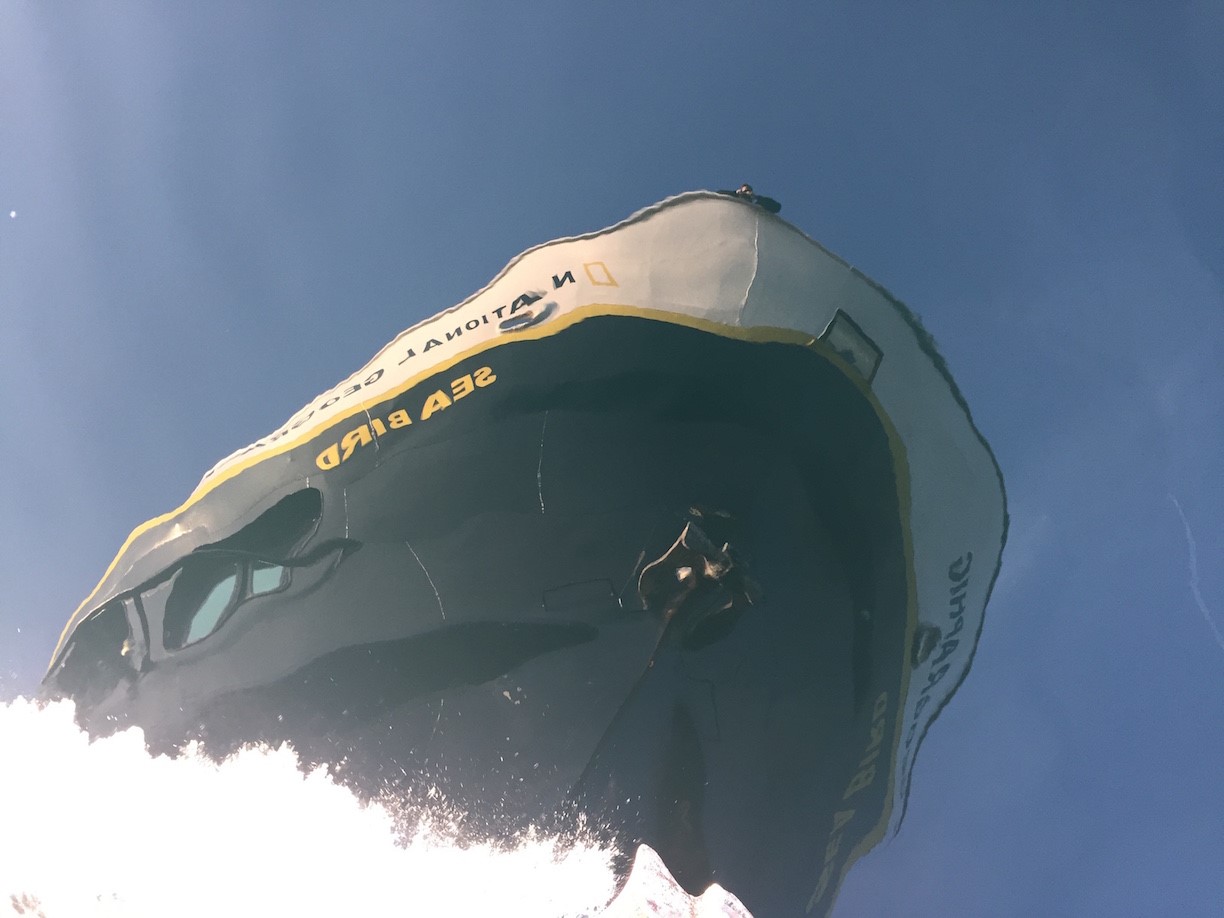 Navigating north with the assistance of some of our younger guests behind the wheel, our junior captains brought us to Kasnyku Falls. After dropping anchor, a small handful of guests, along with the captain and some crew, bravely battled the frigid Alaskan waters and went for a polar plunge. Once all were back on board and properly warmed up, we pulled anchor and headed back into the glassy waters of Chatham Straight in search for more of everything that this incredible place had to offer. And what an offer it was, because after dinner we were treated to a single humpback whale bubble-net feeding right next to the ship in the evening twilight.