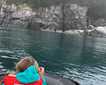Closer towards midday Captain Yuri navigated our ship close to the bird-clad cliffs, where guests were given a front seat view of a grand variety of seabirds. Ranging from puffins to Northern gannets to kittiwakes and numerous gatherings of gulls and more.