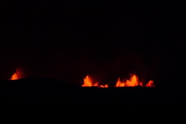 After a cracking morning out at sea with some truly impressive waves, we were called up to the lounge by Expedition Leader Leah Eaton, who briefed us on a volcanic eruption that had just started on the Reykjanes peninsula. As the briefing concluded, we could already see the volcanic plume through which we would later sail on our way around the Reykjanes peninsula. We finally reached Reykjavík in the afternoon, where we had our final lounge briefing with our guest slideshow, a presentation on our final volcano plan, and a farewell speech from Captain Peik Aalto. After an early dinner, we mounted a trio of busses that carried us out onto the Reykjanes peninsula to an abandoned airstrip. From there we could already see the spectacular eruption very clearly, but to get a better look, we made our way onto some of the old storage bunkers which lined the airstrip. This gave us a view of the eruption in all its glory, with smoke billowing into the sky from the two-kilometer-long fissure, and also a number of smaller fires. It was a truly wonderous ending to an already incredible expedition.
