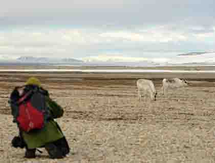 The ocean off of Point Adolphus is prime feeding habitat for humpback whales. During dinner, our bridge officers found them and they positioned the National Geographic Sea Bird perfectly for our viewing. All around us were whales only recently returned from their winter in tropical waters around Hawaii. There, females gave birth to their calves, and males competed to impregnate willing females. Now, breeding is over and it is time to feed and restore the layer of blubber that was exhausted during their winter of little or no feeding. One group of five, in particular, swam repeatedly around the ship. Each whale, with five or six massive exhalations, blew tall columns of mist high into the evening sky; then, one by one, they threw their flukes into the air and descended to seek out schools of herring to be consumed in massive gulps. Again and again, this was played out. We stood, transfixed, absorbing this ballet of 40-ton behemoths until the evening light faded (it was, after all, 10:00 p.m.) and we went to our beds, tired but contented.