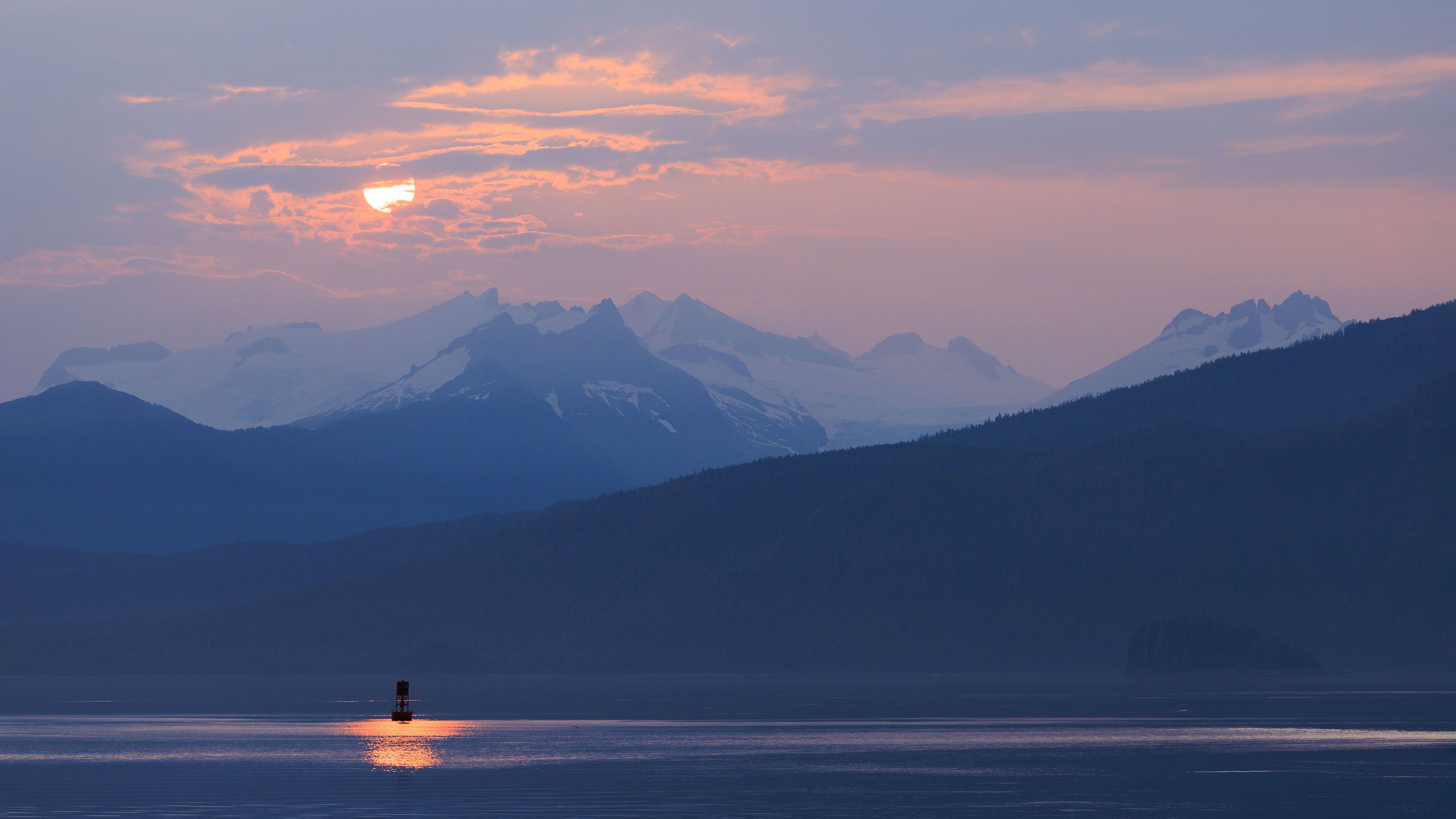The spectacular scenery started early this morning as we transited through the Wrangell Narrows, past the town of Petersburg, and into Frederick Sound. We sailed south from there to our anchorage in Ideal Cove, where we spent the morning kayaking and hiking in the temperate rainforest.