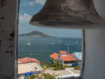 We sailed from Cabritz point Dominica to the Iles des Saintes and anchored about 7 p.m. in the lovely picturesque harbor of the main city in the Iles des Saintes (“The Saints”). The early morning was marked by a little rain but also by the most wonderful double rainbow, which made a semi-circle over the archipelago. The capital of “The Saints” is simply called “Bourg,” or in English the “City.” It is so petit that it hardly qualifies for the name “Hamlet,” but it is picturesque in a remarkably continental French way. The town’s two most imposing buildings are a lovely Catholic Church and a town hall, proclaiming “Liberté, Egalité and Fraternité” those ideals emerging from the French Revolution. The archipelago consists of seven volcanic islands but only two have all year residents. These seven islands along with the much larger island of Guadeloupe comprise the French “Départment of d’Outré Mer.” These islands are a part of France and have approximately the same relationship to the mother country as the Hawaiian Islands have to the continental United States. The inhabitants are French citizens, vote in all elections, and have all the perquisites of being French citizen and a member of the European Union. As such the official currency here is the Euro. And the shops are not inexpensive.