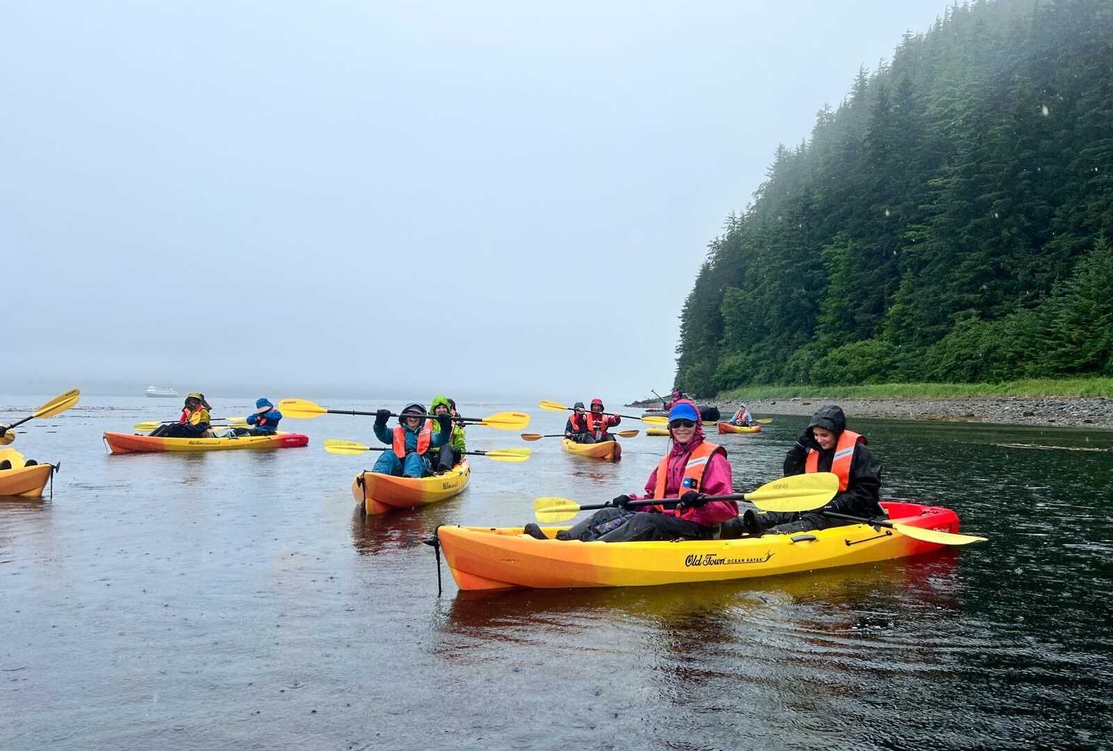 Rugged, remote, and protected from the southeasterly winds and Pacific swell, Idaho Inlet welcomed us this morning. Those who suited up for a gloriously misty Alaskan hike were rewarded with fantastic beachcombing, blooming meadow wildflowers, and wild blueberries perfectly ripe and ready to devour right off the dew-laden bushes. Steller sea lions cavorted along the shoreline as we kayaked around nearby Shaw Island.