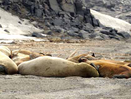 For the afternoon we disembarked at Punta Espinoza, in Fernandina Island, home for a couple of thousand marine iguanas. The tide was very low and it was amazing to see lots of these odd looking sea creatures coming back home from foraging at sea.