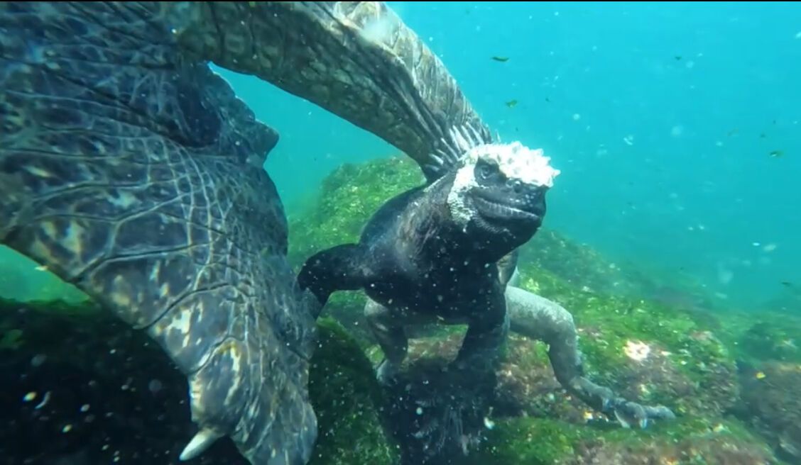 In the afternoon, we had a mesmerizing snorkeling excursion with sea turtles and marine iguanas in their feeding grounds, and right after, we hiked on the youngest island of the archipelago to visit the nesting grounds of the marine iguanas. We had a full show of Fernandina snakes during sunset.