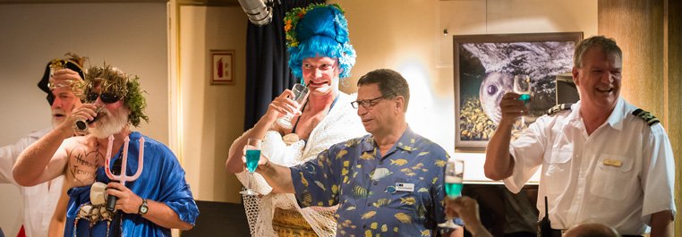 After breakfast, we crossed the Equator line and were baptized with the permission of King Neptune; all of us became shellbacks. We soon arrived to Punta Vicente Roca (the northern part of Isabela) and had a Zodiac ride, where we were able to spot a group of Galapagos penguins fishing and surfacing around our Zodiac, we also saw flightless cormorants nesting along the coast and pacific sea turtles floating on the surface of the ocean just resting and basking!