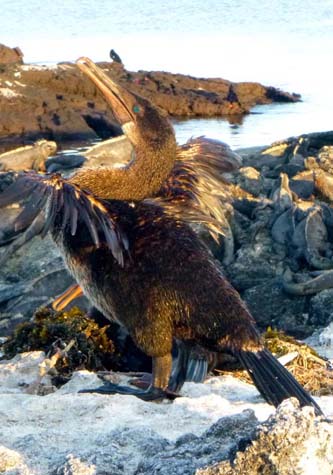 Some of us spent the afternoon kayaking and deepwater snorkeling. Others hiked up to the rim of a tuff cone overlooking Darwin Lake or took a Zodiac ride along the fascinating coastline, where we found penguins, flightless cormorants, and other surprises.