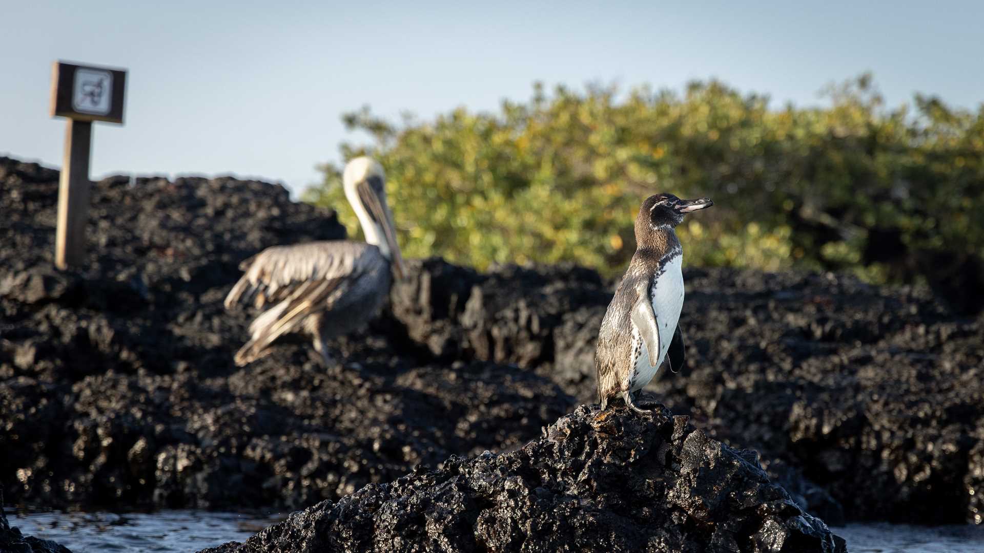 This beautiful morning on Isabela Island, we explored the coastline of Concha Perla. This location provides ideal conditions for mangrove formations, with the winds and ocean currents enriching this marine ecosystem with communities from antagonistic longitudes, such as penguins swimming with tropical reef fishes among lava formations.