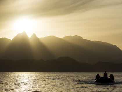 During the afternoon the National Geographic Sea Lion navigated to the east to Isla Tiburón, the largest island in the Gulf. We anchored in the protected waters of Monument Bay and went ashore to explore the pebble beach and made more explorations by expedition landing craft of the offshore islands nearby. A great variety of birds call these rocky islands home, including great blue herons, pelicans, yellow-footed gulls, along with numerous osprey that were actively attending to their nests with chicks. At one point, a peregrine falcon was observed stooping on an osprey as it carried a fish back to the nest.