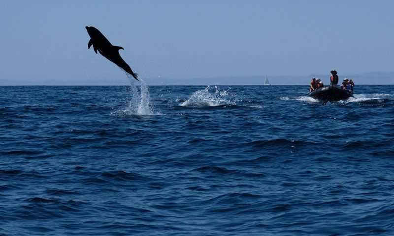 This morning a humpback whale surfaced close to the ship, so we changed our plans and went whale watching from the expedition landing craft. Several dozen very active bottlenose dolphins swam among the small boats. We spent the afternoon snorkeling, swimming, kayaking and paddle boarding in the calm, turquoise waters of Half Moon Bay. Just before dinner, we watched a large group of common dolphins feeding and leaping – exhilarating!