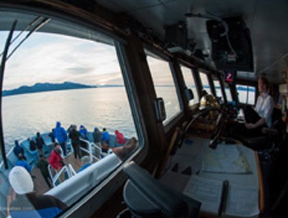 Off Point Retreat, on the north end of Admiralty Island, we photographed the historic lighthouse back-dropped by the snowy peaks of the Coast Range. The water was calm, the sky clear, the sun warm. Cradled in wildness, we found ourselves alone in the middle of coastal Alaska, with few or no other boats around. In every direction climbed the ridges, mountains and forested slopes of the Tongass National Forest, at 17.1 million acres, the largest national forest in the U. S.
