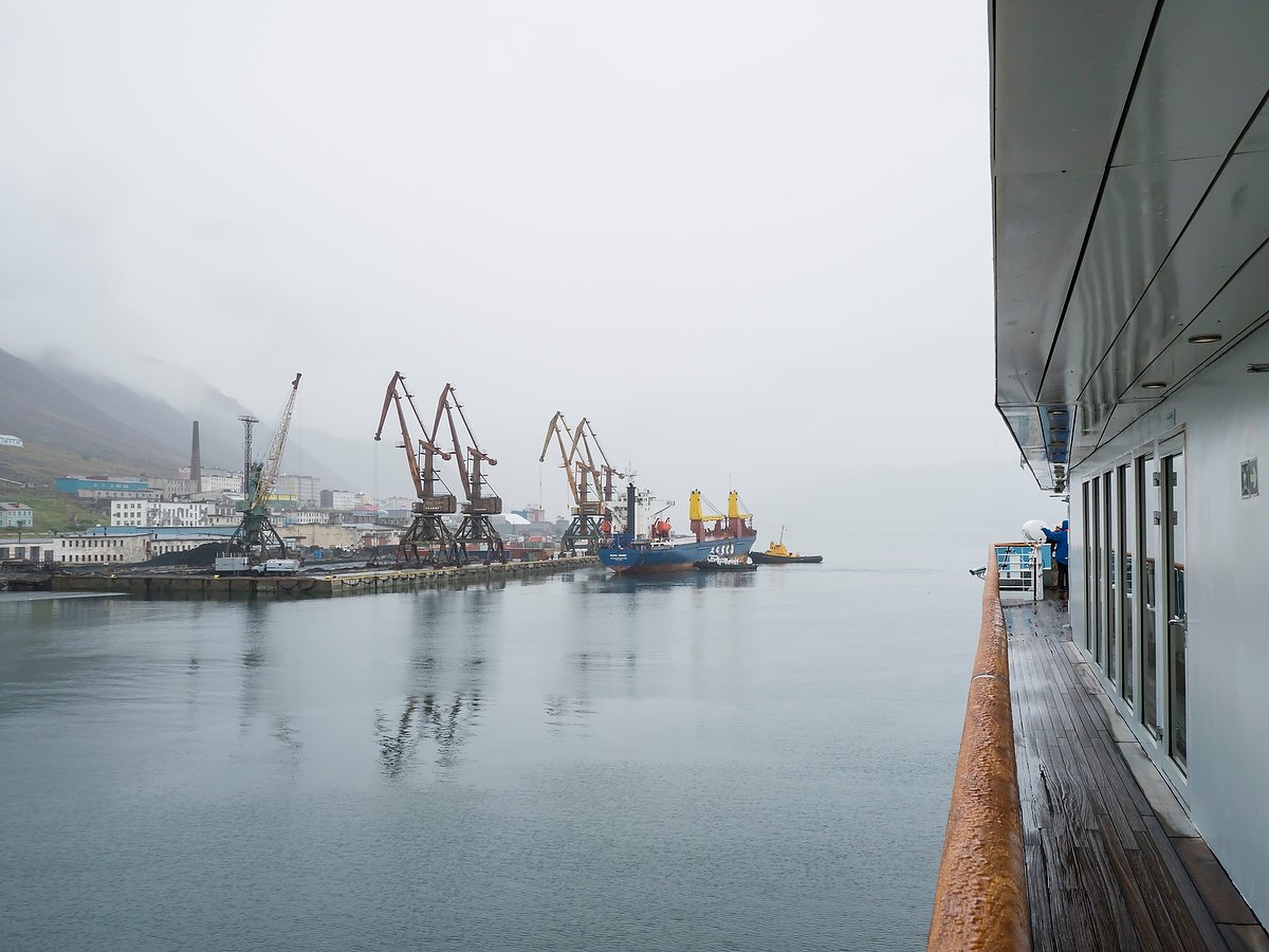Expedition trips like this often seem to me to be a series of vignettes—of images that are only loosely connected. We hop from place to place in a region, along a course line, but the stops we make are sometimes so varied and so different from each other that they seem like photographs that got dropped into a drawer and mixed up, so that they come out in random order. Today felt particularly like that, largely due to the fog. We woke and looked out our windows to see…nothing. It was as though someone had hung light gray sheets over all the glass. Nevertheless, the scout boat went ashore, and in due time we navigating the Zodiacs through a narrow entrance into a lagoon and landing at the edge of (what we assumed was) a vast expanse of tundra. We set out on various walks, and the swirling fog revealed various images. Colorful tundra…a rushing river…gorgeous hills rising all around…magnificently ripe berries…sandhill cranes flapping along in their prehistoric way. But one image that will be forever graven on the memories of all those who got there was the Gil’mimyl Hot Springs. There was no sign for the place, and no trail to get there. There was just hot water pouring out of a hillside just above the river, a sort of a box dug out of the ground next to it with a bit of decking around it, a plank bench supported by two whale vertebrae, and some very shaky stairs down to the river. But the water was deliciously hot in the pool, and bracingly cold in the river, and the whole experience was wildly fun. The steam from the hot tub rose to mingle with the mist above our heads. Back on the ship the fog closed us in—the sheets came down over the windows—foiling our plans for whale watching. But later in the afternoon we sailed out of the fogbank and into clear, calm weather, and glorious views of the Chukotka coastline—our final vignette for the day. Tomorrow will bring another series of images and experiences, and I for one will try to be open to all of them.