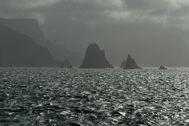 We left the Beagle Channel in the middle of the night to cross from Tierra del Fuego to the rarely visited Staten Island. Less than 1,000 people visit this island which is frequently referred to as ‘the end of the Americas.’ At the mouth of Franklin Bay on the northwest of Staten Island, we spent time among thousands of rockhopper penguins. Across the entire island, there are an estimated 130,000 breeding pairs of rockhoppers on the island, making the total population over half a million individuals! Several species of seabirds took advantage of the brisk winds around us and we had our first look of the striated caracara, one of the rarest in the group. We have many naturalists and guests on this trip who are passionate about birds of prey, so we enjoyed watching their skillful soaring overhead. In the afternoon, the weather cooperated nicely which allowed us to Zodiac to shore for a wet landing. Once ashore, we removed our life vests, donned our packs, and trekked along the ridge above Elgor Bay. The reward at the end of the trail was a historic lighthouse considered to be the southernmost lighthouse on the continent. This lighthouse inspired the adventure novel, The Lighthouse at the End of the World by Jules Verne, a tale which includes pirates and survival in one of the harshest environments in the world.