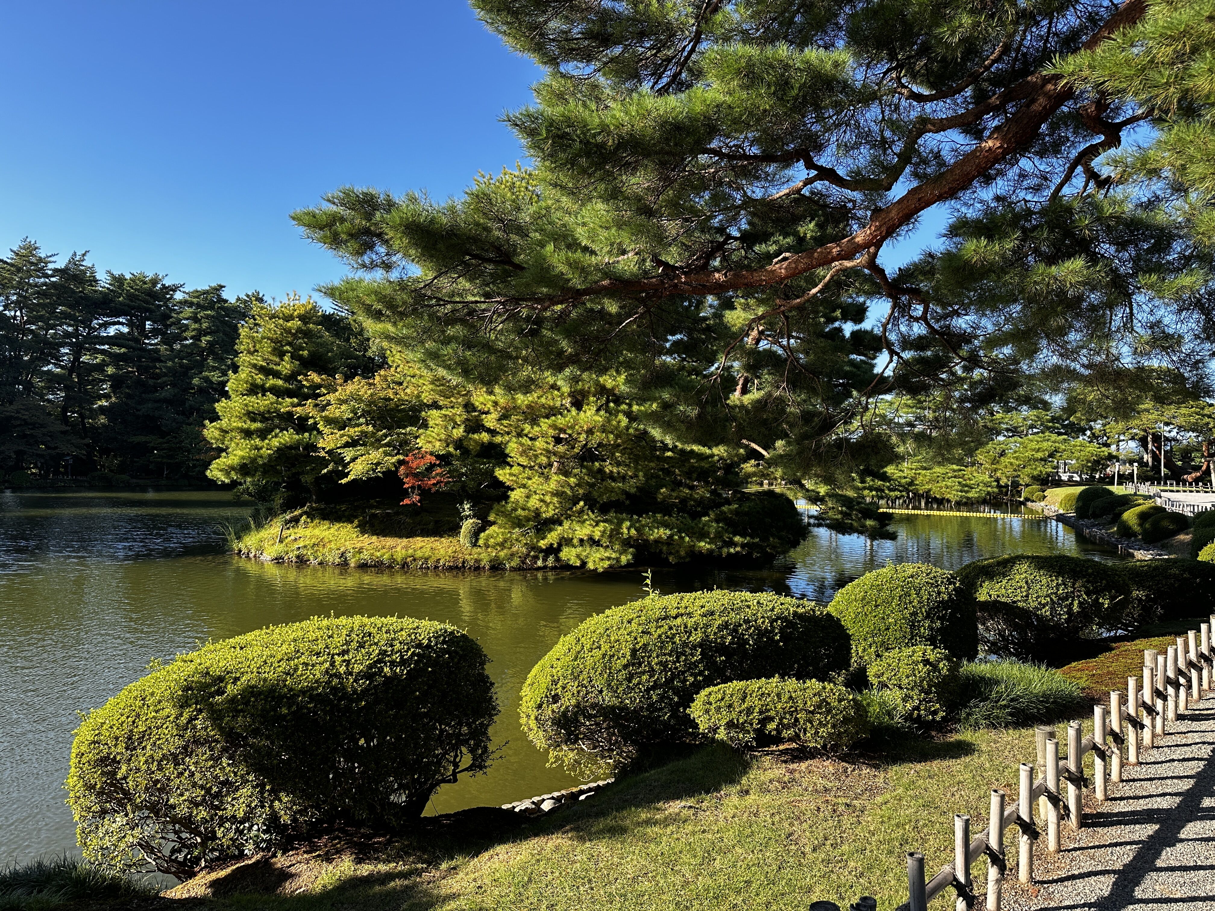 A stroll through the shaded groves of pine trees within the Kenrokuen Garden reminds us of the deep reverence the Japanese feel for nature. Elderly trees are cared for with the utmost dignity and tender touches. Ageing limbs are supported with buttresses and posts to help them through the snowy winter and blustering winds. Expert arborists treat each tree as a cherished member of their family.