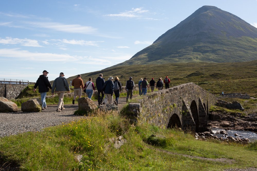 A second group spent the morning with Robin and Eric hiking in the spectacular Sligachan Glen that runs between the volcanic Cuillin mountains on the Isle of Skye. The heather was just beginning to bloom, adding a pink-purple hue to the surrounding moorlands. A few of the hikers turned back early to have time to enjoy the famous Sligachan pub with its hundreds of whiskey offerings before we returned to our mooring in Kyle of Lochalsh.