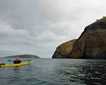 This morning we found refuge from inclement seas and skies in the protection of Hanus Bay on the northeast corner of Baranof Island. Hiking amongst giants on the Lake Eva trail we were rewarded with the experience of an incredible forest and some of the largest trees we have seen yet on this voyage. Sitka spruce, the world’s largest spruce and hardest of softwoods soaked up the sun on the edge of the river and estuary and stood broad and tall with cones cached sprucely by squirrels across the forest floor. The more shade tolerant western hemlocks had great examples of heart-rot, witches broom/mistletoe and fluting. The idea of the upside down rainforest when compared to tropical forests was evident as we admired the canopy of two species (vs 200+) and the profusion of vegetation on the forest floor. Further up the trail and above the waterfall we found a pool full of sockeye salmon. Having returned to their natal grounds after swimming around the Pacific for a few years this species has come to spawn and die. Still chrome in color it is just a matter of time before these fish begin to undergo several changes in color and appearance as they cease to eat in freshwater and focus their energy on depositing and fertilizing their eggs and defending their redds (nests). Of the 4500 eggs she may deposit maybe 4-6 of her offspring will survive the gauntlet of predation in both river and ocean and repeat the cycle 6/7 years from now. The resulting carcasses from this river of flesh will serve to feed the next generation and the forest as the bears drag their catch into the woods and the decomposing carcasses feed the trees nitrogen (N15) from the ocean.