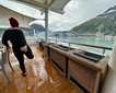We staged a platform on the fantail to run kayak operations, and some guests were ferried ashore after breakfast for a series of hikes. Staff and guests alike were excited for the high probability of seeing salmon in a forested stream for the first time this season — and we were not disappointed! After we crested the rise on our first round of hikes, we descended to a pool that is often full of salmon waiting for rain to make the next set of riffles passable. After our eyes adjusted to the low light of the forest, and to the slight glare on the water’s surface, we were able to see that there were indeed salmon in the stream! Closer inspection revealed chum, sockeye, and pink varieties waiting for the rain. Some fish were already showing the ravages of their one-way trip to spawn; several were covered with “Ick,” or Ichthyophonus, a fungal infection that often afflicts returning salmonids.