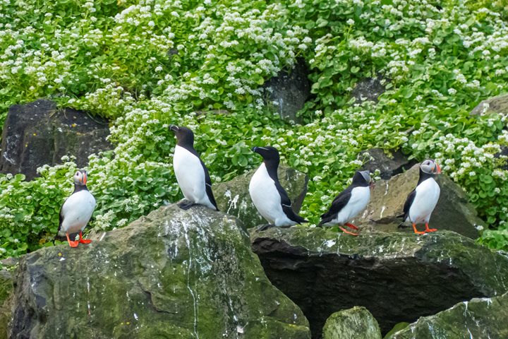 It feels strange to arrive in Iceland from the north and experience the island for its southern qualities; yet this is what we have done. The cold Greenland Current has given way to the North Atlantic Drift: snow and ice to early summer sunshine. Yesterday’s heavy rain passed through to leave the bright blue skies and lenticular clouds. This has been a true expedition, with the expedition leader and the captain on the bridge early morning optimizing our daily schedule. This morning, after cruising beside the spectacular bird cliffs at Latrabjarg before breakfast, we chose to make an expedition stop at Brekkuhlid in Breidafjord. A series of walks were offered in a pristine landscape with the remains of a former farmstead set amongst an abundance of spring flowers, including mountain aven, the Icelandic poppy, and wild thyme in abundance.