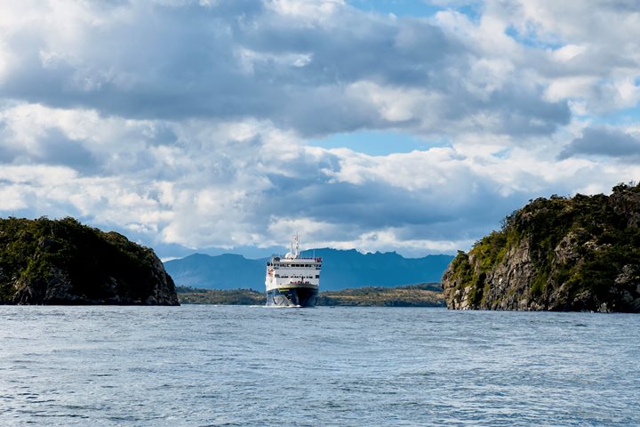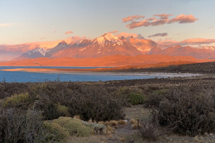 Can the weather get any better? March is mid-fall here, equivalent to October back home. It was still dark when we boarded buses for our full-day tour of southern Chile’s iconic Torres del Paine National Park. We drove north. A rosy glow at the skyline slowly transformed into golden light, casting slanted shadows as the sun rose over the hills to the east, illuminating the mountains in front of us. Some of us were on the panoramic tour, visiting key scenic lookouts and finishing at Rio Serrano for a traditional Patagonian asado, or barbecue. Whole lambs had been roasting over lenga wood fires all morning. The rest of us were on a slightly longer tour, with two lovely hikes breaking up the bus ride. (We still enjoyed the lamb barbecue!) We were blessed with blue skies, sunshine, and no wind, which is very unusual for southern Patagonia. Well, that is, until our second hike, up a high hill called Cerro Condor, where the wind was so strong that it was hard to walk…at times, even to stand! After our delicious barbecue, we headed back to National Geographic Explorer , where it was docked at Puerto Natales, ready to continue our adventure.
