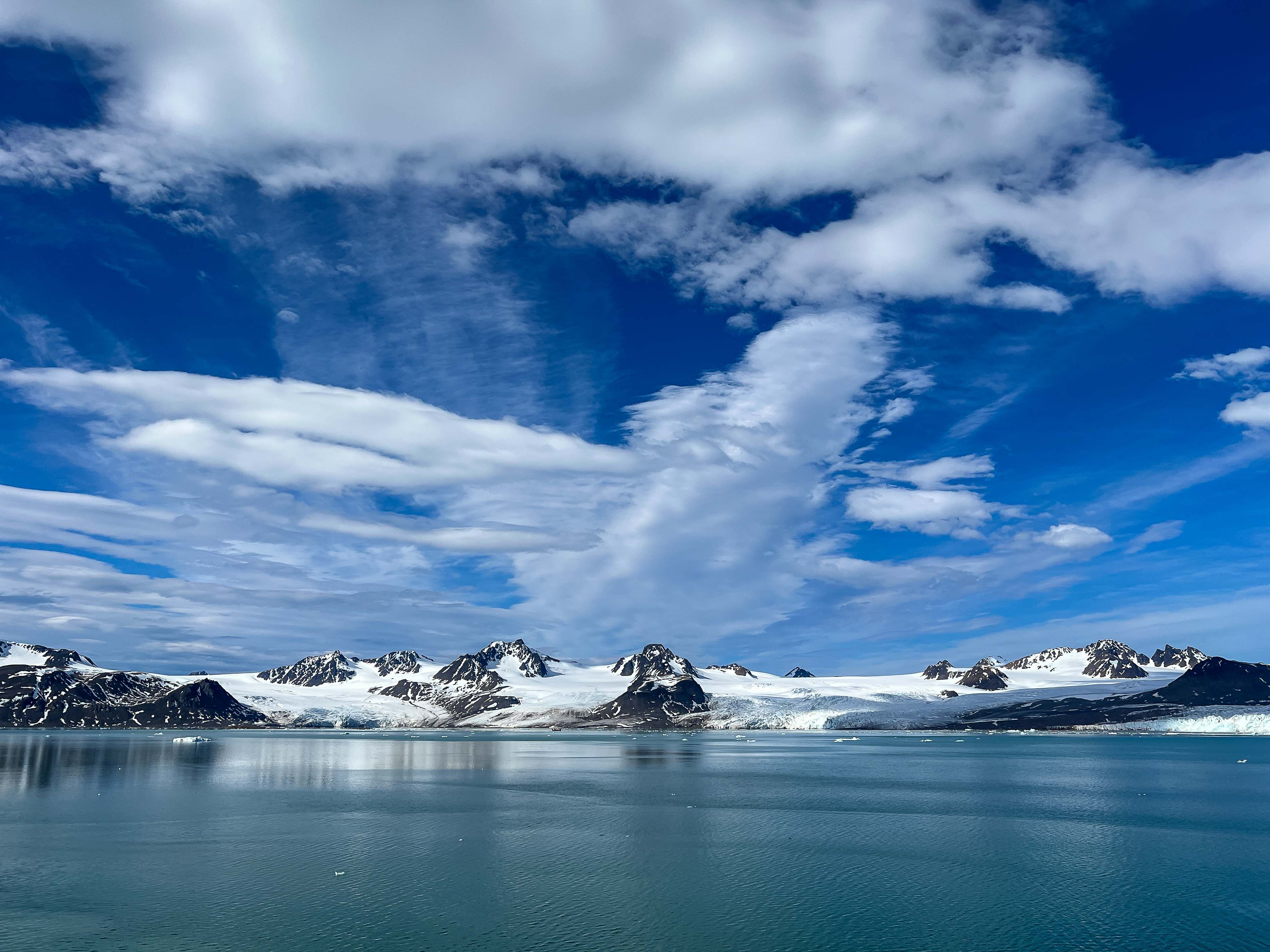 Luckily for us, the predicted poor weather didn’t materialize, so we awoke to the most glorious morning…sunny skies and calm seas. It made for perfect conditions as National Geographic Endurance made her way up Lilliehookfjorden to the glacier at the end. The calm conditions allowed us to hear the calving of the glacier really clearly. We saw quite a few events, and the last one caused a large wave.