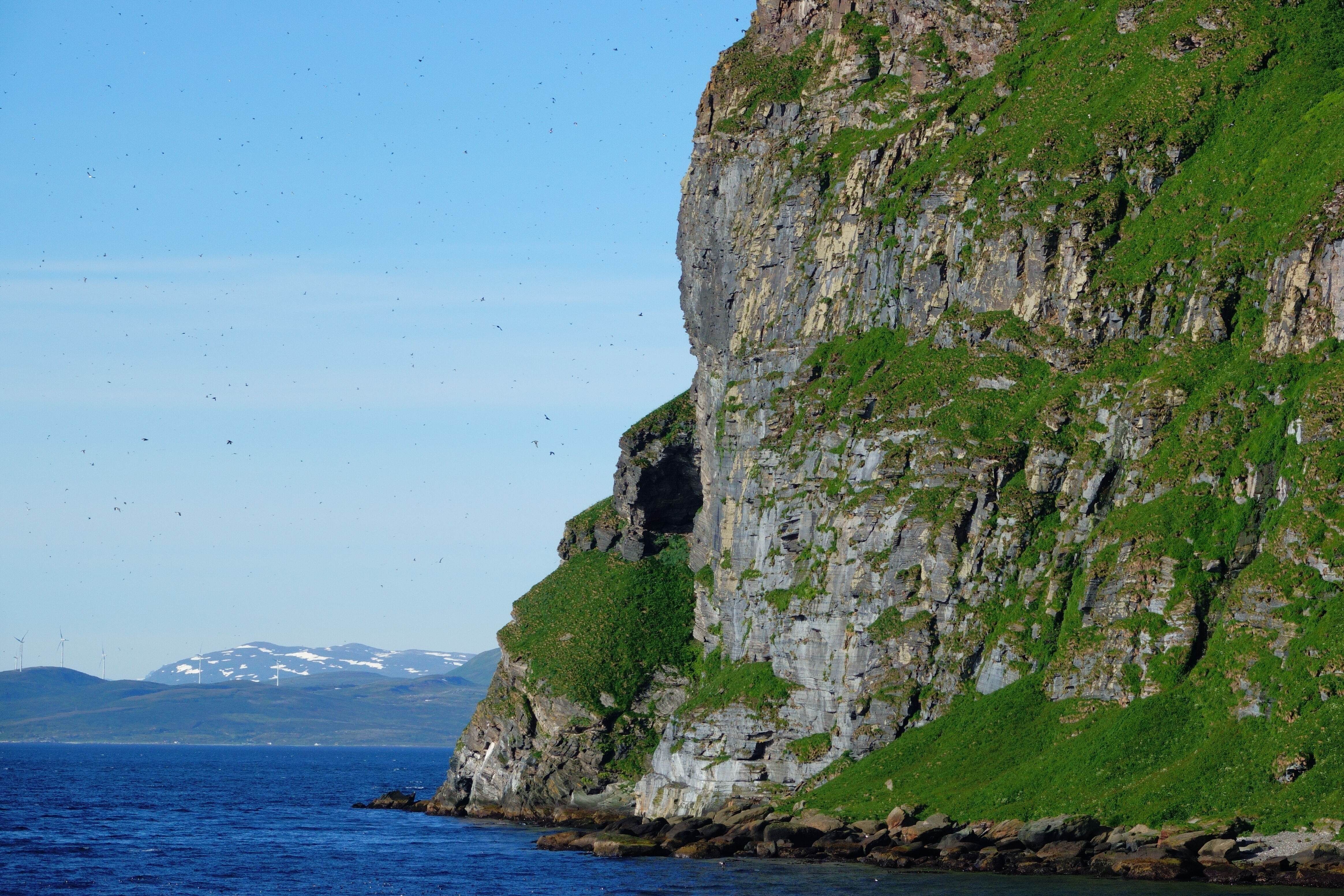 With all the mandatory briefings out of the way, we could enjoy the scenery and get to our afternoon destination of Signehamna, where the WWII German weather station was located. Given just how calm it was, quite a few guests chose to go kayaking and the rest went exploring via Zodiac. We observed all sorts of wildlife, including Svalbard reindeer, barnacle geese, Atlantic puffins, and many other birds.